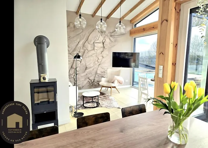 Idarkopf tower'dan 4 kilometre mesafede bulunan Hunsruecker Tiny Ferien L Villa, teras ile 1 yatak odalı bir tesistir. Donanımlı bir mutfak ve 1 banyo odası bulunmaktadır.